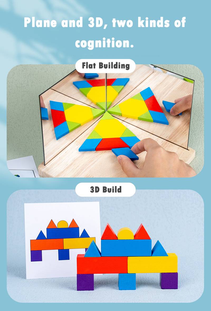 · Наблюдайте за строительными блоками в нескольких направлениях, чтобы осуществлять наблюдение за способностью вашего ребенка, распознавание цвета и распознавание геометрической формы.
