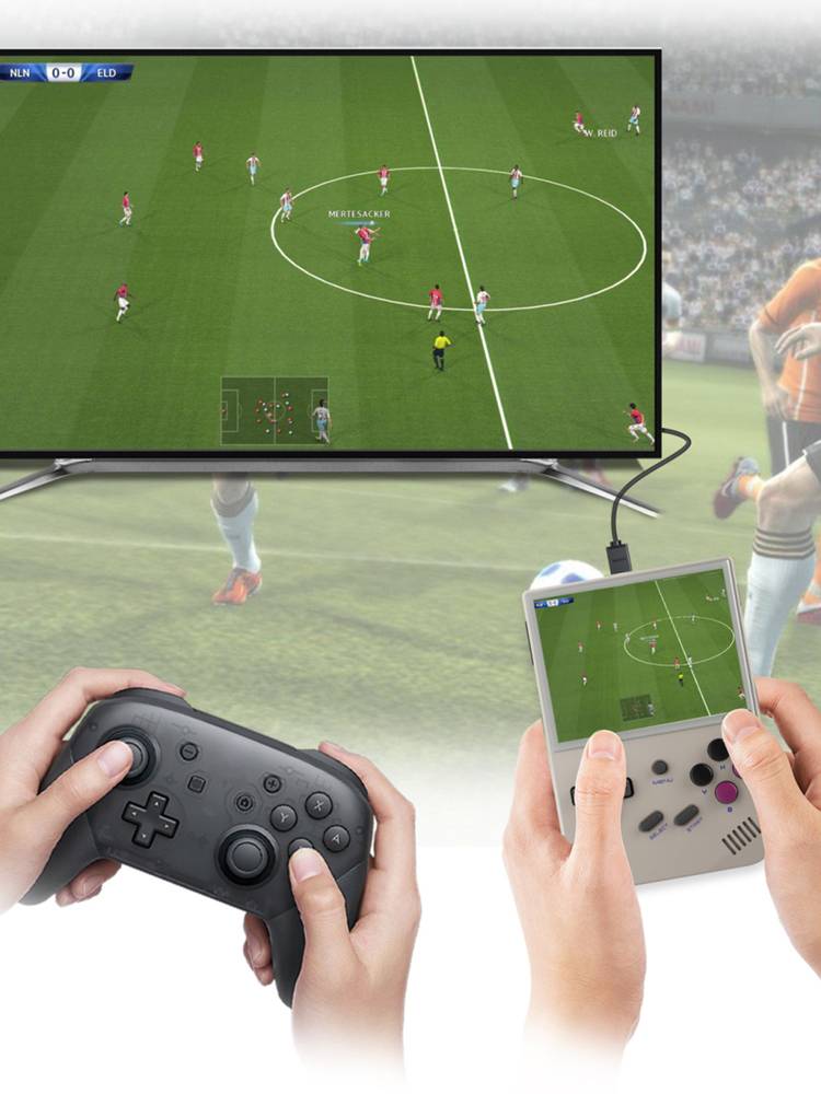 [Поддержка 2 плееров и выходного телевизора] RG35XX поддерживает подключение беспроводного контроллера 2,4G и проводного контроллера, выходного телевизора, вибромотора. В свободное время друзья и родственники участвуют в сотрудничестве или конкурсах, что также является хорошим помощником для близких отношений.