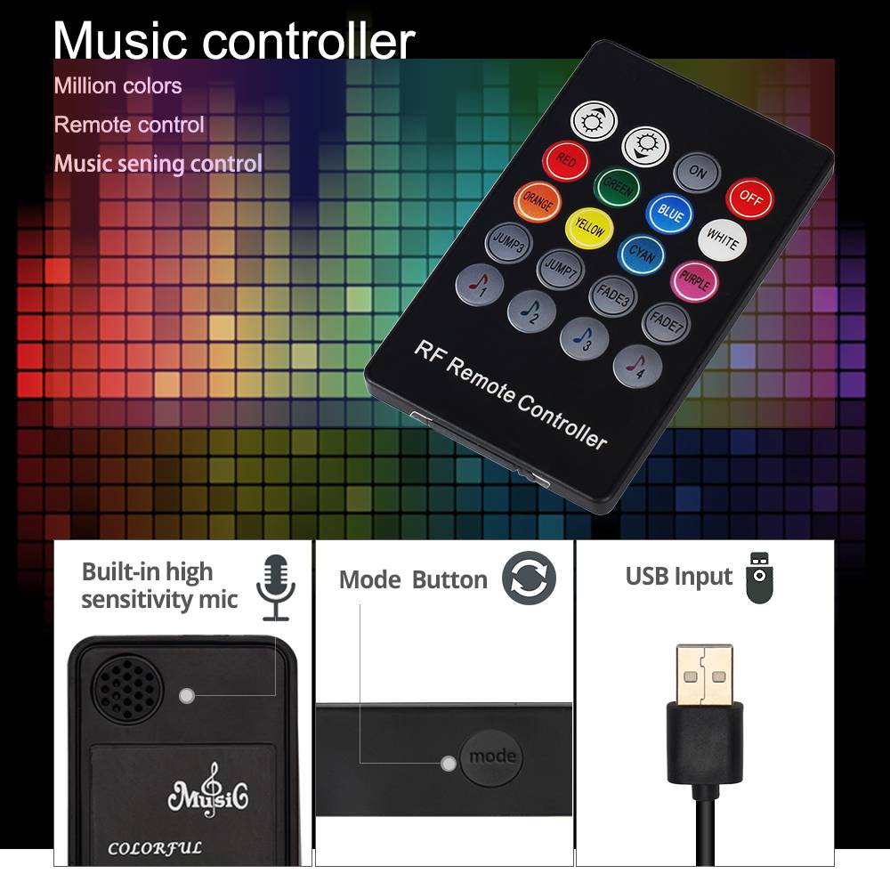 Примечание: 2 м Светодиодная лента требует выхода USB 2A, в противном случае контроллер и Светодиодная лента не могут работать хорошо