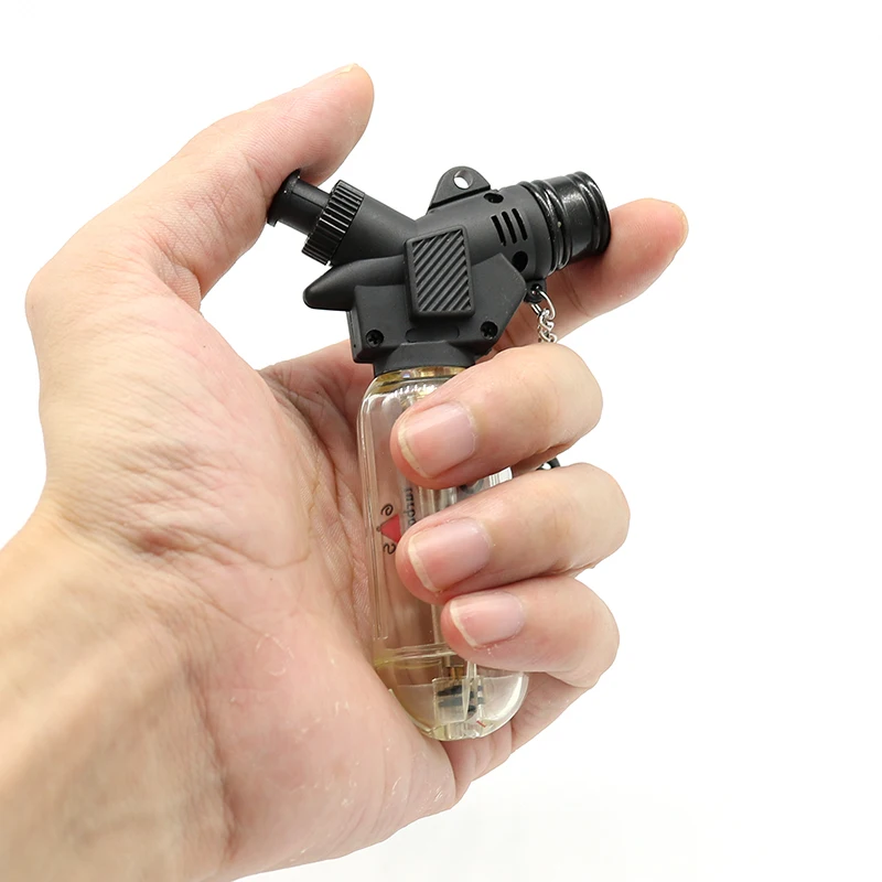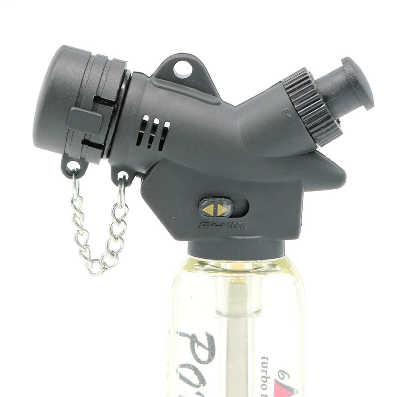 Бутановая Зажигалка с защитной крышкой открывается, которая открывается только при нажатии/включении факела. Зажигалка заправляется из стандартной бутановой зажигалки. Для предотвращения нажатия кнопки зажигания имеется Блокировка пламени и Блокировка от детей.