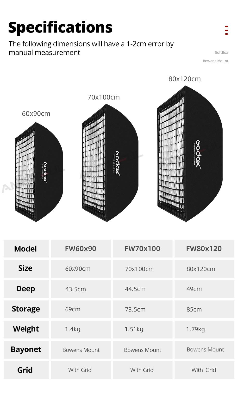 Посылка включает:Софтбокс x 1.Металлическое Монтажное кольцо x 1Металлический опорный полюс x 4Внутренняя мягкая ткань x 1Грид× 1Передняя крышка x 1Примечание: Не включает вспышку и светильник