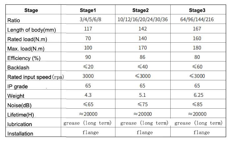 Спецификация 110 мм планетарной коробки передач для 110 серводвигателя: