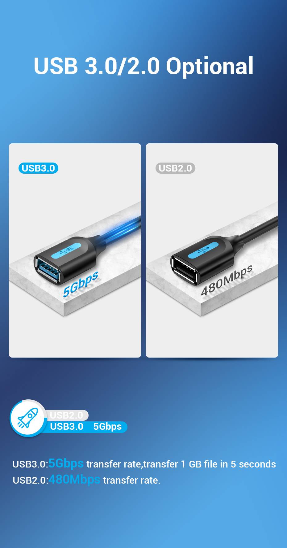 Удлинительный USB-кабель Vention USB 3.0, штекер - USB 3.0 2.0, женский удлинитель для ноутбука Smart TV, USB 3.0 2.0, удлинительный кабель для передачи данных ● ВЫСОКОСКОРОСТНАЯ ТРАНСМИССИЯ Этот удлинительный кабель USB 3.0 поддерживает скорость до 5 Гбит / с, что в 10 раз быстрее, чем удлинительный кабель USB 2.0, и передает файл размером 1 ГБ за 5 секунд. (Примечание: все данные получены из лаборатории vention). Также обратно совместим с USB 2.0, 1.1 и 1.0 ( скорость ограничена шиной USB). Plug & Play в универсальной системе, драйвер не требуется. ● РАЗЛИЧНЫЕ ХАРАКТЕРИСТИКИ ДЛИНЫ У нас есть пять вариантов длины 0,5 м / 1 м / 1,5 м / 2 м / 3 м на ваш выбор. Его можно использовать в любой ситуации. Например, 0,5–1 м можно использовать для расширения рабочего стола до U-диска, 1,5–2 м можно использовать для расширения принтера, 3 м можно использовать для расширения использования игровой ручки. ● ПРОЧНЫЙ ИЗНОСОСТОЙКИЙ Прецизионно обработанный процесс фокусируется на каждой детали для достижения высокой производительности. Никелированный интерфейс делает штекер износостойким, антиокислительным, долговечным при замене. Материал ПВХ премиум-класса делает катанку более гибкой и прочной, а также увеличивает срок службы. Конструкция с длинным хвостом позволяет отказаться от частой замены кабелей для увеличения срока службы. ● ШИРОКИЕ ПРИЛОЖЕНИЯ Он совместим с ноутбуком, мышью, клавиатурой, настольным компьютером, жестким диском, U-диском, мобильным телефоном, игровой ручкой, телевизором, USB в автомобиле и другими устройствами. Расширение USB на другие устройства более простым и дешевым способом. ● ПРИМЕЧАНИЕ. У нас есть два типа этого продукта: 1.USB 3.0: скорость передачи данных 5 Гбит / с и никелированный интерфейс 2.USB 2.0: скорость передачи 480 Мбит / с и позолоченный интерфейс. Пожалуйста, выберите в соответствии с вашими потребностями, спасибо.