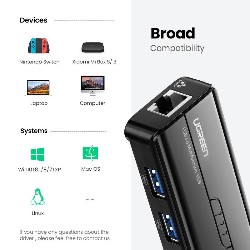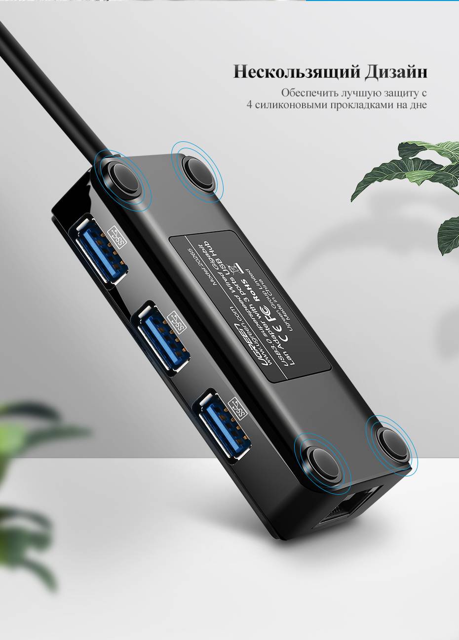 Ugreen USB Ethernet адаптер с зарядное устройство с 3 usb-портами для usb-хаб может не только добавить сетевой интерфейс, но и для подключения вашего рабочего стола к нескольким usb-устройства, идеальное решение для Macbook Air, xiaomi Mi Box 3/S, nintendo Switch и так далее. Gigabit Ethernet Параметры -Поддержка доступа к сети 10/100/1000 Мбит/с; -Поддержка режима ожидания и удаленного пробуждения через link-изменить, Magic Packet, microsoft wakeup Frame и внешний Wakeup pin; -Поддерживает полный и полудуплексный режимы работы; USB 3,0 концентратор -Расширение 3 портов USB 3,0, удобный для вашего флеш-накопителя, клавиатуры, мыши, камеры, принтера, HDD и т. д.; -Поддержка скорости до 5 Гбит/с; -Совместимость с USB 2,0 и 1,1; -Конструкция DC-jack для устройств, жаждущих питания. Широкий Совместимость -Подходит для вашего Xiaomi Mi Box 3/S, nintendo Switch и рабочего стола. -Для сетевой функции, бесплатный диск для Windows 8/10, драйвер, необходимый для Windows XP/7, Mac OS и Linux. -Совместимость с IEEE 802,3, 802.3u и 802.3ab (10BASE-T, 100BASE-TX и 1000BASE-T). Покупки обратите внимание Есть 3 модели по желанию, пожалуйста, выберите подходящую модель в соответствии с вашими потребностями: 1)1000 Мбит/с ethernet с USB 3,0 хабом:Сетевой набор микросхем AX88179 (20265)- Лидер продаж 2)100 Мбит/с ethernet с USB 2,0 хабом: Сетевой набор микросхем AX88772 (20264) Кроме того, дополнительный кабель питания или адаптер питания опционально Важное замечание - Не совместим с другими ТВ-боксами, за исключением Xiaomi Mi box 3/S.После того, как ТВ-приставка переходит в спящий режим, из-за слабого источника питания, функция продукта не может быть автоматически проснута и должна быть повторно вставлена в ТВ-приставка -Сетевой драйвер может быть загружен через наш официальный сайт (ugreen.com) или встроенный драйвер CD. Пожалуйста, установите подходящий драйвер в соответствии с сетевым чипсетом (AX88179/AX88772)