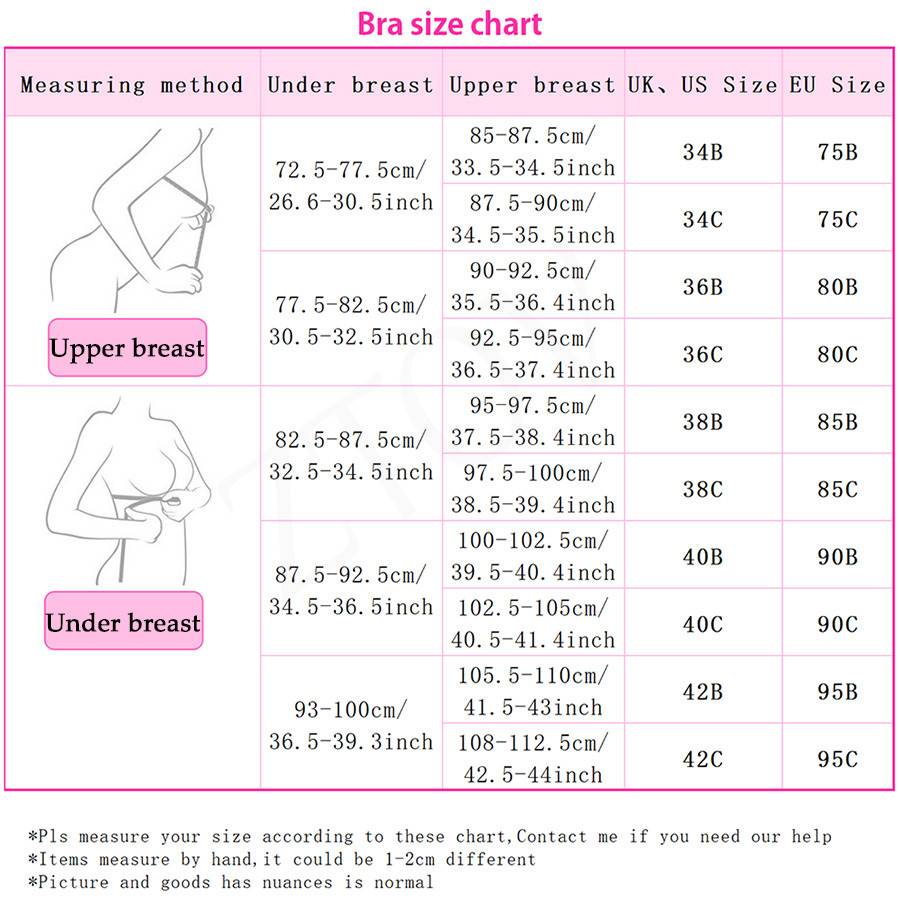 Размер груди: 75, 80, 85, 90, 95 (= размер: 34, 36, 38, 40, 42; размер чашки: B, C)