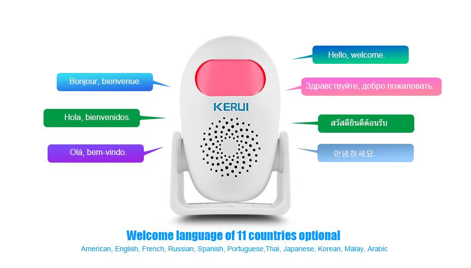 【Отслеживайте все области, которые вы заботитесь с KERUI M120 】 подходит для домов, магазинов, гаражей, офисов и т. д. 【 24/7 спасатель для вашей семьи 】громкий, сигнал тревоги 110 дБ оповещает окружающих и отпугивает возможных незваных Этот детектор оповещения, когда охранная удерживать взломам зону детектора 【Приветственный язык из 11 стран опций 】 M120 оповещение для бизнеса имеет 4 уровня регулируемой громкости от 0 до 110 дБ. Предлагаем элегантную музыку различные хорошо известные колокольчики 【Легко установить 】просто Положите детектор на стол или порвите двухстороннюю клейкую ленту, которая на спине и приклейте их к области, которую вы хотите определить