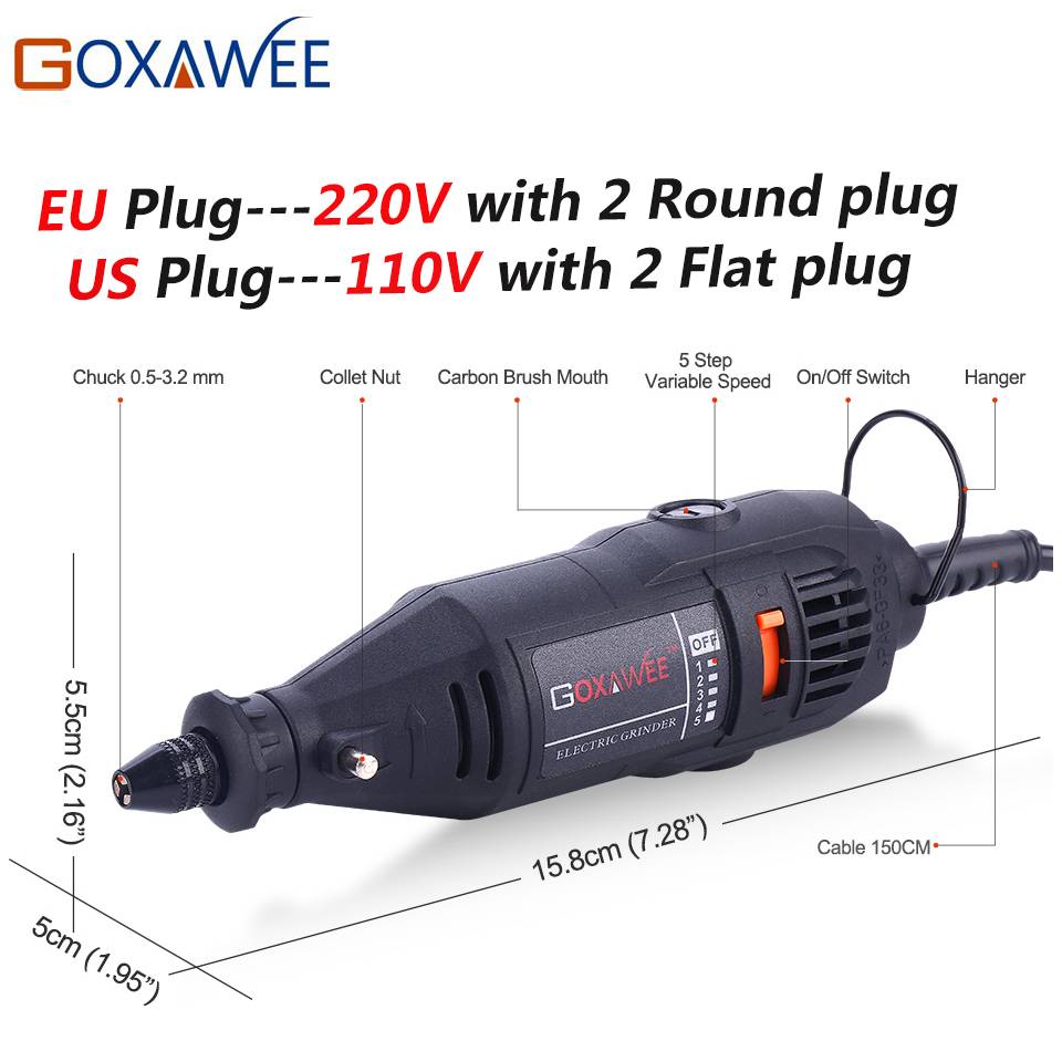 GOXAWEE 220 В электроинструменты электрическая мини дрель Enrgraver с 0,3-3,2 мм Универсальный патрон & Shiled роторный набор инструментов для Dremel 3000 4000 Бренд: GOXAWEE Модель: 1337 Напряжение: 220 В штепсельная вилка европейского стандарта/110 В штепсельная вилка американского стандарта Максимальная скорость: 30000 об/мин Мощность: 130 Вт Стиль: набор вращающихся инструментов Подходит для самостоятельного изготовления, металла, дерева, стекла, пластика и так далее Использование: резка, сверление, гравировка, шлифовка, фрезерование, полировка, Удаление, шлифовка, соскабливание, заточка и формирование Размеры изделия: 11x9,4x3 дюйм (ов)