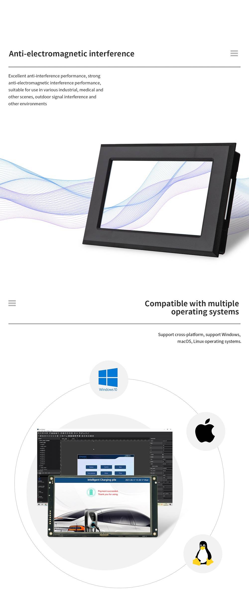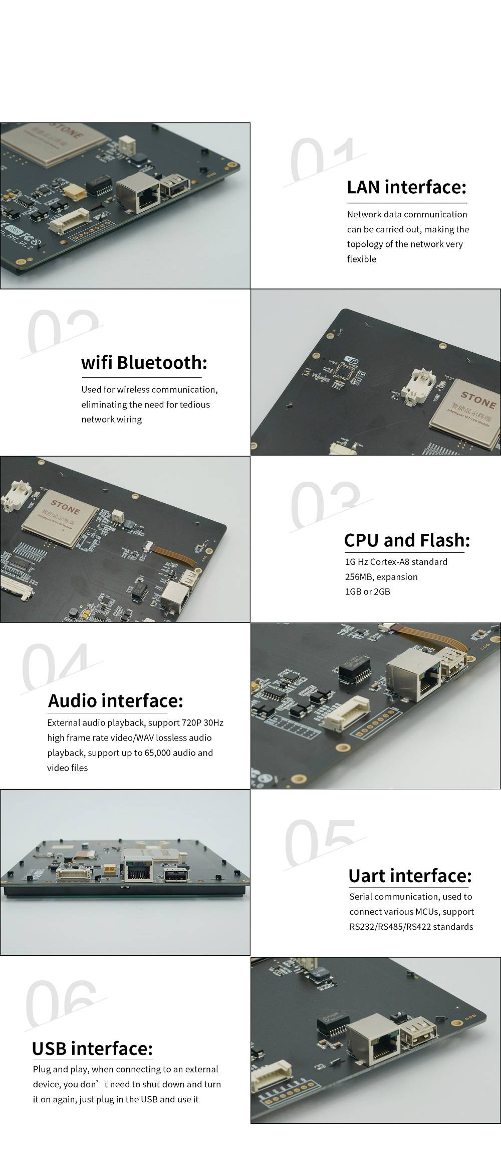 ВSTWI056WT/N-01Была задумана какTFT мониторИСенсорный контроллер.Он включает в себя процессор, программу управления, драйвер, флэш-память, RS232/RS422 / RS485/ TTL / LAN порт, Wi-Fi/Bluetooth, Сенсорный экран, источник питания и т. Д., поэтому это целая система отображения, основанная на мощной и легкой операционной системе,Который может управляться любым MCU.