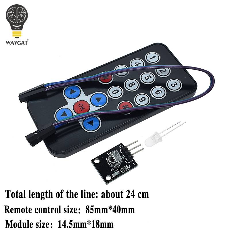 Последний Инфракрасный Комплект беспроводного дистанционного управления состоит из мини-тонкого ИК-пульта 38 кГц и инфракрасных приемников, мини-тонкого инфракрасного пульта дистанционного управления с 17 функциональными клавишами, расстояние стрельбы до 8 метров, идеально подходит для различных устройств в комнате управления. Модуль ИК-приемника может получить стандартный сигнал 38 кГц модуляции дистанционного управления, через программирование, вы можете достичь дистанционного управления декодирования сигнала, который может производить различные роботы дистанционного управления и интерактивные работы. Ультра-тонкий инфракрасный пульт дистанционного управления Параметры продукта: