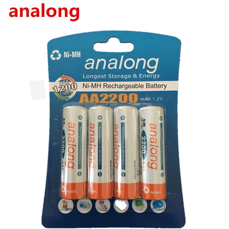 Оригинал AA 1,2 V 2200mAh analong Перезаряжаемого ni-cd Ni-MH батарея . Модель: 2200 мА-ч . Размер (макс.): Диаметр: 14,5 (мм) Высота: 50,5 (мм) . Ёмкость: 2200 мА/ч, Напряжение: 1,2 (V) . Стандартная зарядка-> Ток: 220 (мА) Время: 15 (ч) . Быстрая зарядка-> Ток: 660 (мА) время: 4 (ч) . Применение: цифровая камера, портативное видео, игра, фонарик, дистанционное управление, игрушка, MP3/MP4 Play, электрическая бритва AA Размер Ni-MH Аккумуляторная батарея: Поддержка высоких Дренажные устройства, 1200 циклов. 1. Готов к использованию: предварительно заряжен, готов к немедленному использованию. 2. Низкий саморазряд: analong удерживает 90% емкости после 12 месяцев в магазине, хорошее удержание емкости. 3. В четыре раза дольше: analong делает в четыре раза больше снимков, чем щелочная батарея для цифровой камеры. Analong поддерживает высокие Дренажные устройства. 4. Экономичность: можно перезаряжать и использовать до 1200 раз. 5. Экологически чистый: производим меньше отходов, чем одноразовые батареи и обеспечиваем экономию энергии и сырья. 6. Хорошо подходит для всех применений: цифровая камера, портативное видео, игра, фонарик, дистанционное управление, игрушка, MP3/MP4 плеер, электрическая бритва. 7. Новейшие технологии батареи обеспечивают лучшую производительность щелочной и NiMH батареи.