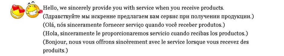 Если вы не удовлетворены товарами, пожалуйста, не нажимайте кнопку «подтверждение доставки», не оставляйте плохой отзыв или не открывайте спор.