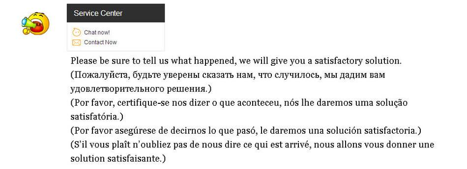 Пожалуйста, не забудьте рассказать нам, что произошло, мы предложим вам приемлемое решение.