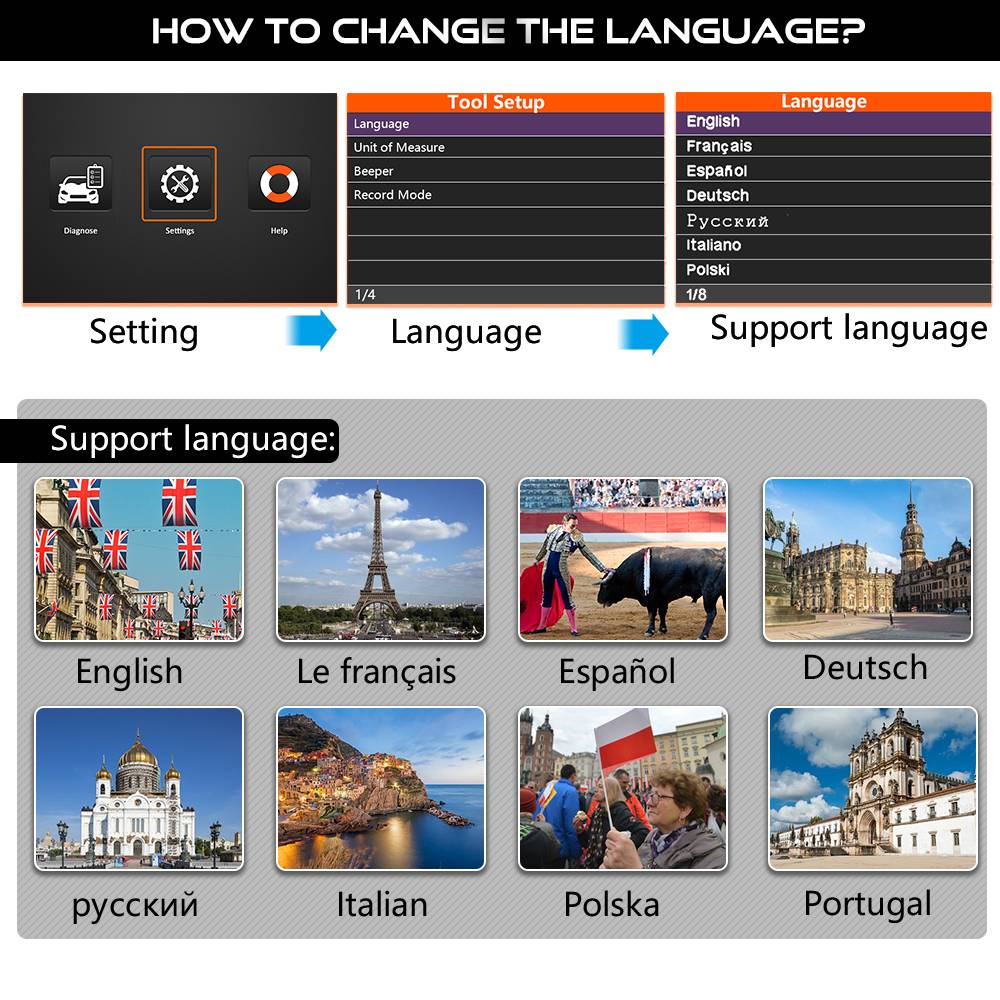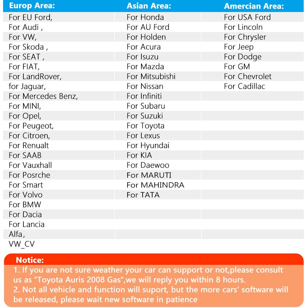 [Широкий охват транспортного средства]-Совместимость с более чем 46 автопроизводителями для полной диагностики автомобиля. Работает на большинстве из 1996 США, 2002 ЕС, 2005 азиатских или новых OBD II и может отечественных или импортных транспортных средств. Поддерживает английский, французский, испанский, немецкий, русский, итальянский, польский и португальский языки.