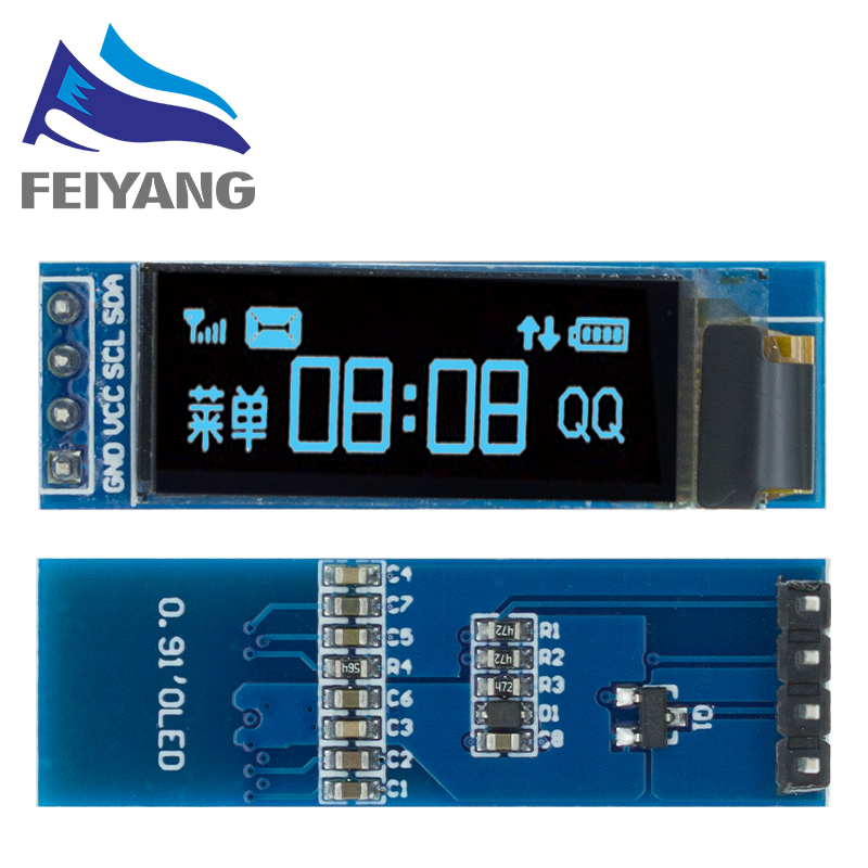Oled-дисплей, не требует подсветки, самостоятельного освещения, производительность дисплея лучше, чем традиционный ЖК-дисплей, а также более низкое потребление. IC драйвера: SSD1306 Размер: 0,91 дюйма OLED Разрешение: 128x32 IIC интерфейс Цвет дисплея: синий Pin Описание: GND: мощность заземления VCC: мощность + (DC 3,3 ~ 5 В) SCL: часовая линия SDA: линия передачи данных