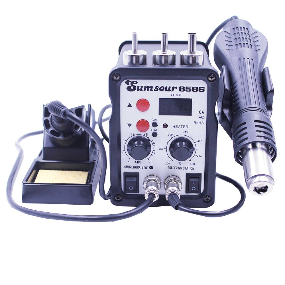 1x2в1 паяльная станция 1 x держатель 1 x Губка (Иногда протирайте наконечники для пайки) 3 насадки (5 мм, 8 мм, 12 мм) 1 x пистолет горячего воздуха 1 х горячее железо 1 x подставка 1 х Кабель питания 1 x IC съемник 1 х Руководство 1 x нагреватель горячего воздуха 1 х паяльник нагреватель 12 железных наконечников 1x0,5 мм Оловянная проволока 1x6-в-1 вспомогательные сварочные инструменты 1 x присоска (939) 1 x фитиль для припоя 2 пинцета ESD