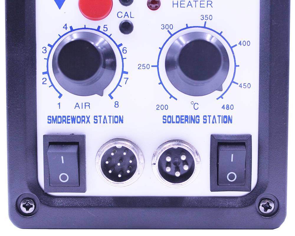 Пистолет горячего воздуха Мощность: 700 Вт Устойчивость: <2Ω Размер наконечника: <23 мм Стабильность температуры: ± 1 °C Вентилятор: Бесщеточный шар Воздушный поток: 120 л/мин (макс.) Шум: <45 дБ Контроль температуры: 100 ~ 450 °C Пайки горячим утюгом Мощность: 60 Вт Устойчивость: < 2Ω Стабильность температуры: ± 1 °C Железо: дизайн ESD Материал нагревателя: никель-металл Контроль температуры: 200 ~ 480 °C Примечание: Перед использованием ознакомьтесь с руководством пользователя Подходит для: распайки нескольких компонентов, таких как SOIC ,CHIP, QFP, PLCC, BGA и чувствительные к температурам компоненты (особенно для плоских кабелей и кабельных разъемов); Подходит для горячего сжатия, нагрева, депиляция, деформация, размораживание. Подогрев и резиновая пайка, и так далее.