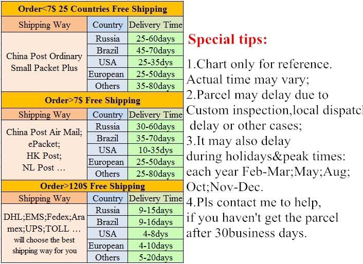 (1)Цена только на товар и транспортные расходы, Поэтому мыНе несет ответственности за какие-либо таможенные сборы или пошлины. И пожалуйстаСообщите нам заранееЕсли у вас есть какие-либо требования к таможенному оформлению. В случае просрочки вы можете столкнуться с последствиями.
