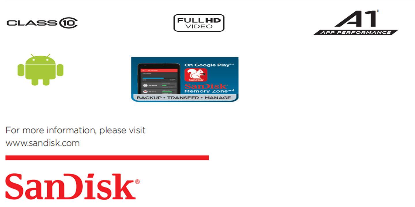 Поддержка видео в формате Full HD (1920x1080) может варьироваться в зависимости от хост-устройства, атрибутов файлов и других факторов. См.: www.sandisk.com/HD.