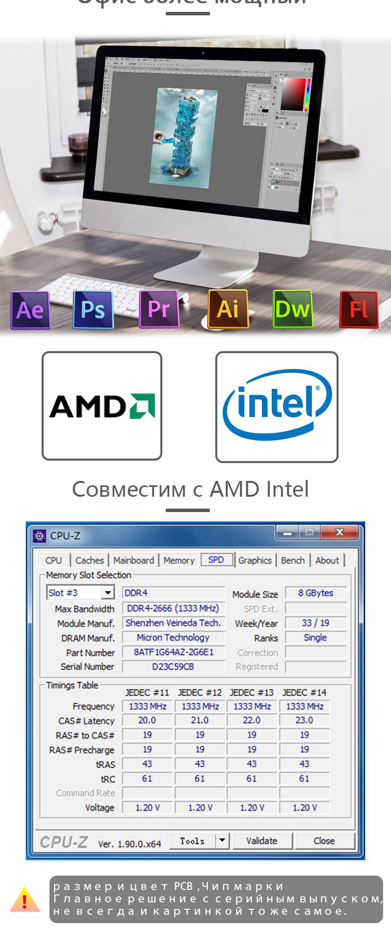 VEINEDA ddr4 4GB/8GB/2133/2400 МГц/2666 МГц Тип интерфейса 288pin памяти Напряжение 1,2 V для Intel AMD DeskPC