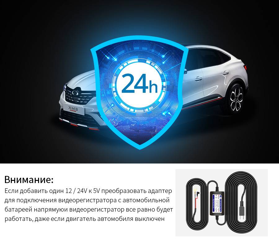 Если вы беспокоитесь о том, что ваш автомобиль поврежден другим человеком после парковки, вы можете использовать нашу линию buck для подключения видеорегистратора, чтобы убедиться, что регистратор работает 24 часа. если кто-то другой повредит ваш автомобиль и удар срабатывает g-сенсор, видеорегистратор сразу включится и записывает ситуацию.