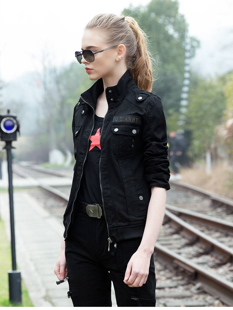 2021 Военная Зеленая куртка для женщин весна/осень молния хлопок вышивка камуфляж пальто Размер M L XL 2XL