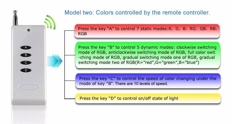Цвет излучения: красный, зеленый, синий,(RGB)