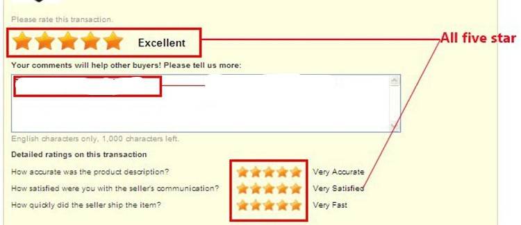 Если ваш удовлетворены нашей продукции, пожалуйста, дайте нам все пять-звезда обратной связи. Любые вопросы, пожалуйста, свяжитесь с нами немедленно