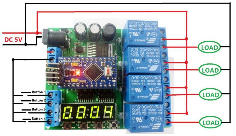 2 Схема управления 5 В постоянного тока, схема подключения ниже. «НАГРУЗКА» может быть светодиодными лампами, вентиляторами, разработкой платы иДругое оборудование постоянного тока 5 В