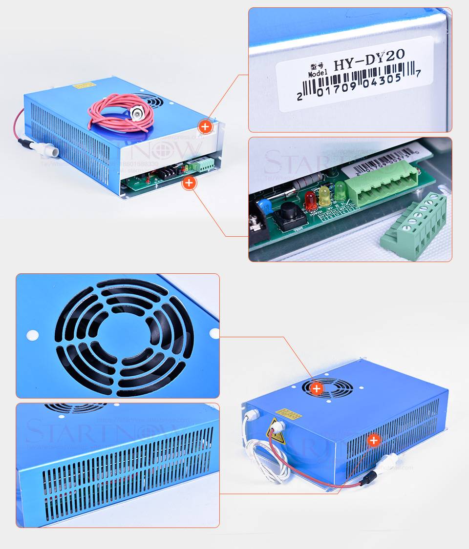 CO2 лазерный источник питанияМодель:HY-DY20Мощность:150 Вт (130-150 Вт)Вход переменного тока:110V/220VВыход постоянного тока:50кв 37маЕсли вам нужна лазерная трубка, пожалуйста, нажмите здесь.