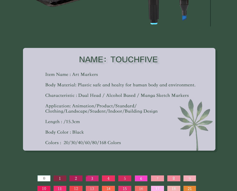 Название: маркеры для рисования Материалы: пластик безопасен и безопасен для человеческого организма и окружающей среды. Особенности: двойная головка/спирт/комический эскиз mark Применение: анимация/продукт/стандарт/одежда/Пейзаж/студент/внутренний/архитектурный дизайн Длина:/15,3 см Цвет корпуса: черный Цвет: 12/20/24/30/40/60/80/168 цвет s Примечание: 20 цветов на выбор-это ваш собственный выбор цвета. Если вы не отметите цвет самостоятельно, мы вышлем вам 20 ручек случайным образом. Подарок Описание: Купить 30 цветов набор: отправить (крючок линия ручка × 1, подсветка ручка × 1, игла ручка × 1, милые наклейки × 1) бесплатно Купить 40 цветов в наборе: Отправка (крючок-ручка × 1, подсветка-ручка × 1, игла-ручка × 1, милые наклейки × 1) бесплатно Купить набор из 60 цветов: отправка (высококачественный маркер × 1, ручка для подсветки × 1, игольчатая ручка × 1, блендер 0 ручка × 1, милая наклейка × 1) бесплатно Купить набор из 80 цветов: Отправка (Высококачественная линейка маркеров × 1, ручка для подсветки × 1, игольчатая ручка × 1, блендер 0 ручек × 1, милый карандаш × 1, маленький карандаш × 1) бесплатно Купить 168 цветов набор: отправить (высокое качество линии marker× 2 Ручка для подсветки × 2, игольчатая ручка × 2, блендер 0 ручка × 2, милые наклейки × 2, маленькие карандаши × 1, эскиз Книга × 1) бесплатно