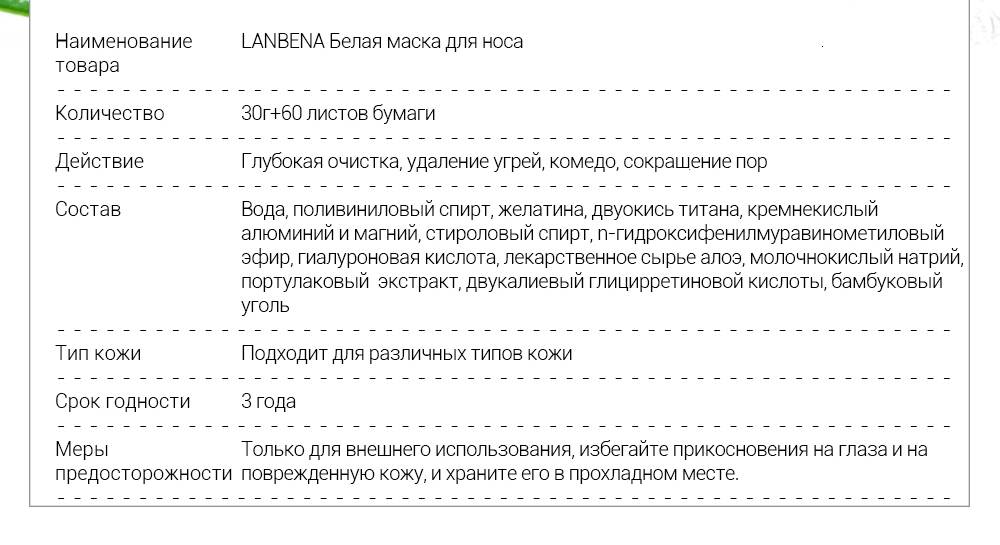 Ингредиенты: Вода, поливиниловый спирт, желатина, двуокись титана, кремнекислый алюминий и магний, стироловый спирт, n-гидроксифенилмуравинометиловый эфир, гиалуроновая кислота, лекарственное сырье алоэ, молочнокислый натрий, портулаковый экстракт, двукалиевый глицирретиновой кислоты, бамбуковый уголь