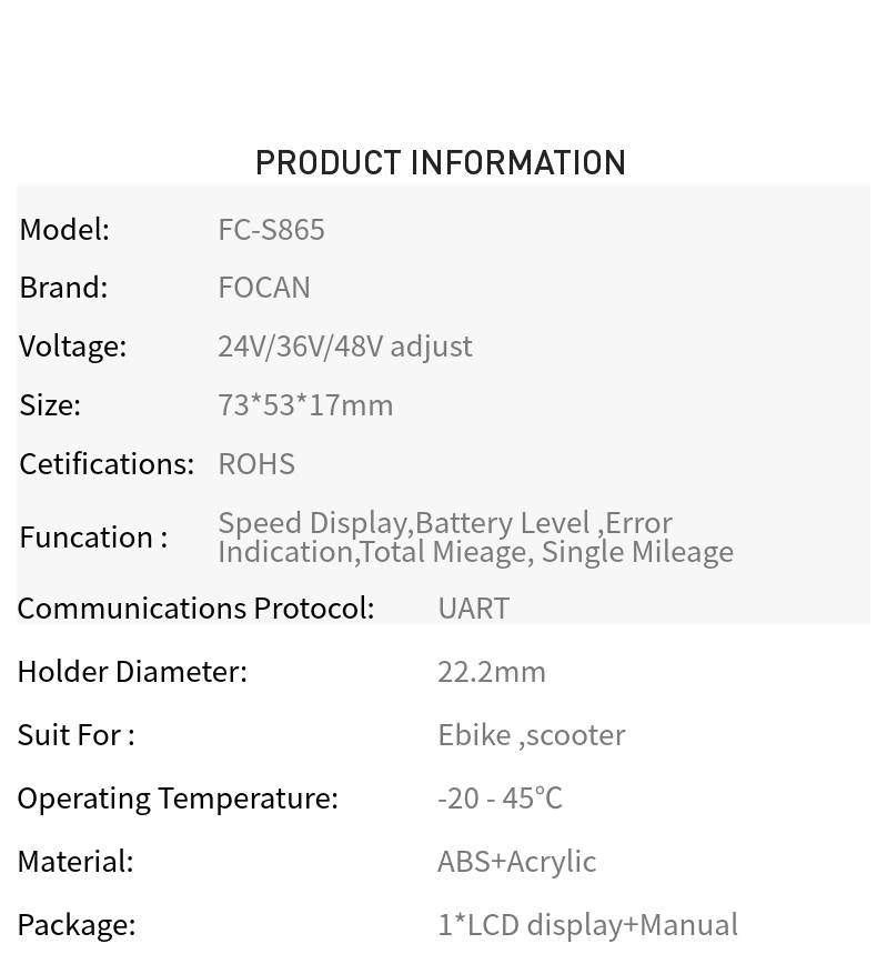 Набор данныхP01: яркость подсветки (1: самая темная; 3: самая яркая)P02: блок пробега (0: км; 1: миля)P03: класс напряжения: 24 В/36 В/48 В (по умолчанию) /36 ВP04: время спячки (0: никогда, другие цифры относятся к времени спячки) Единица измерения: минутаP05: помощь: 0,3 Шестерня 1gear2V, 2gear3V,3 Шестерня 4V1,5 шестерни передач 1 шт. 2В, 2 шестерни 2,5 V,3 режима 3 В, 4 шестерни 3,5 V,4 передач 4VP06: колесо Диаметр единица измерения-сантиметр дюймов точность: 0,5P07: магнитный стальной номер (1-100)P08: максимальный диапазон скорости: км/чP08: Ограничение скорости: диапазон 0-50 км/ч, 50 означает неограниченную скорость.1. Некоммуникационное состояние (управление прибором): Выключите выход ШИМ, когда скоростьБольше, чем скорость настройки; Включите PWM выход автоматически, когда скорость ниже, чемСкорость настройки и скорость вождения (+ 1 км/ч) на текущей скорости; (выключите ограничение скоростиТолько для бустера.2. Состояние связи (контроль контроллера): скорость привода поддерживается с заданным значением.Ошибка: + 1 км/ч; (средний предел скорости бустера и Тернера)Примечание: значение здесь основано на километрах. Когда Настройка блока изменяется от километров доМиль, значение скорости интерфейса дисплея будет автоматически преобразовано в правильное значениеМиль. Тем не менее, набор данных ограничения скорости в меню под интерфейсом mile не будет преобразован,Что не соответствует фактическому предельному значению скорости миль.P9: Zero Start, non-zero Start Settings, 0:Zero Start; 1: non-zero StartP10: режим вождения установлен в 0: boost drive (через boost gear, чтобы определить, сколько мощностиВыход, в это время переключатель недействителен).1: Электрический привод (поворачивая драйвер, в это время Шестерня boost недействительна).2: электропривод и электропривод сосуществуют в то же время (состояние нулевого запуска электрическогоДиск недопустим).P11: вспомогательный Диапазон настройки чувствительности: 1-24P12: диапазон настройки стартовой мощности: 0-5P13: Установите тип бустерного магнитного диска на 5,8,12 зерновых магнитовP14P14: регулятор тока, ограничение по умолчанию 12A диапазон: 1-20AP15:Без этого5P16: настройки сброса ODO нажмите кнопку в течение 5 секунд ODO clear