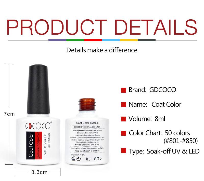 Таблица цветов из 8 мл GDCOCO цветной гель-лак, 50 цветов на выбор