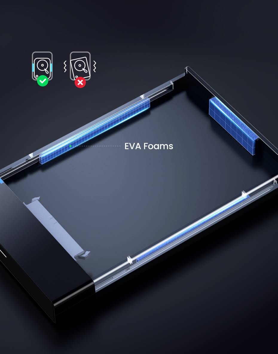 * Equipped soft EVA foams inside, protecting your hard disk