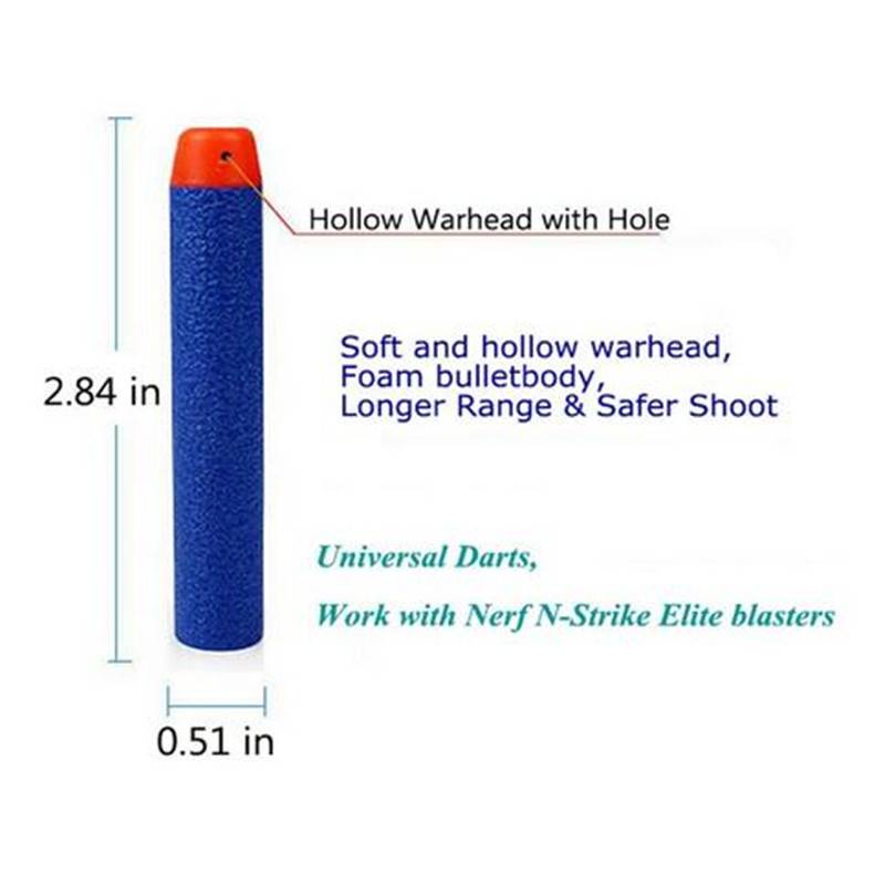1.100% новый и высокое качество. 2. Мягкий материал EVA и дизайн с круглой головкой. 3. Очень безопасные пули, которые также могут быть запущены на дальние расстояния. 4. Длина: прибл. 2,84 дюйма/7,2 см. 5. Диаметр: прибл. 0,51 дюйма/1,2 см. 6. Цвет: синий/красный/зеленый