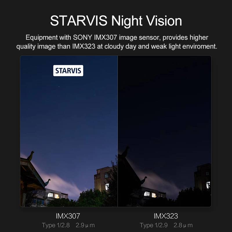 Светочувствительный сенсор Sony IMX323 1/2.9’’ может работать даже в условиях плохого освещения без ущерба качеству изображения.