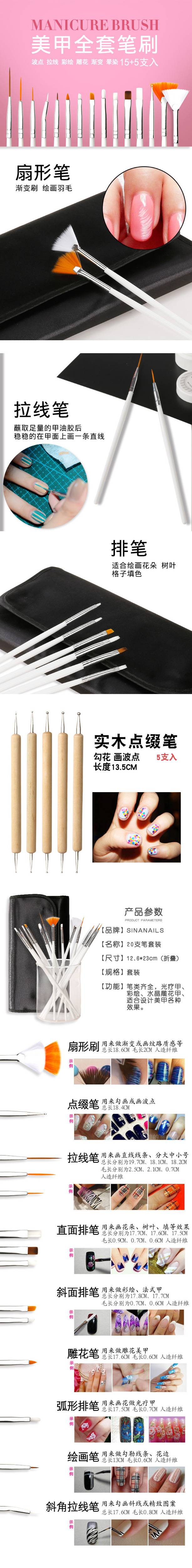 Лазурная красота 20 шт./лот ногтей щетка с 15 шт ногти полировка кисти и 5 шт Pen расставить для ногтей маникюрные инструменты