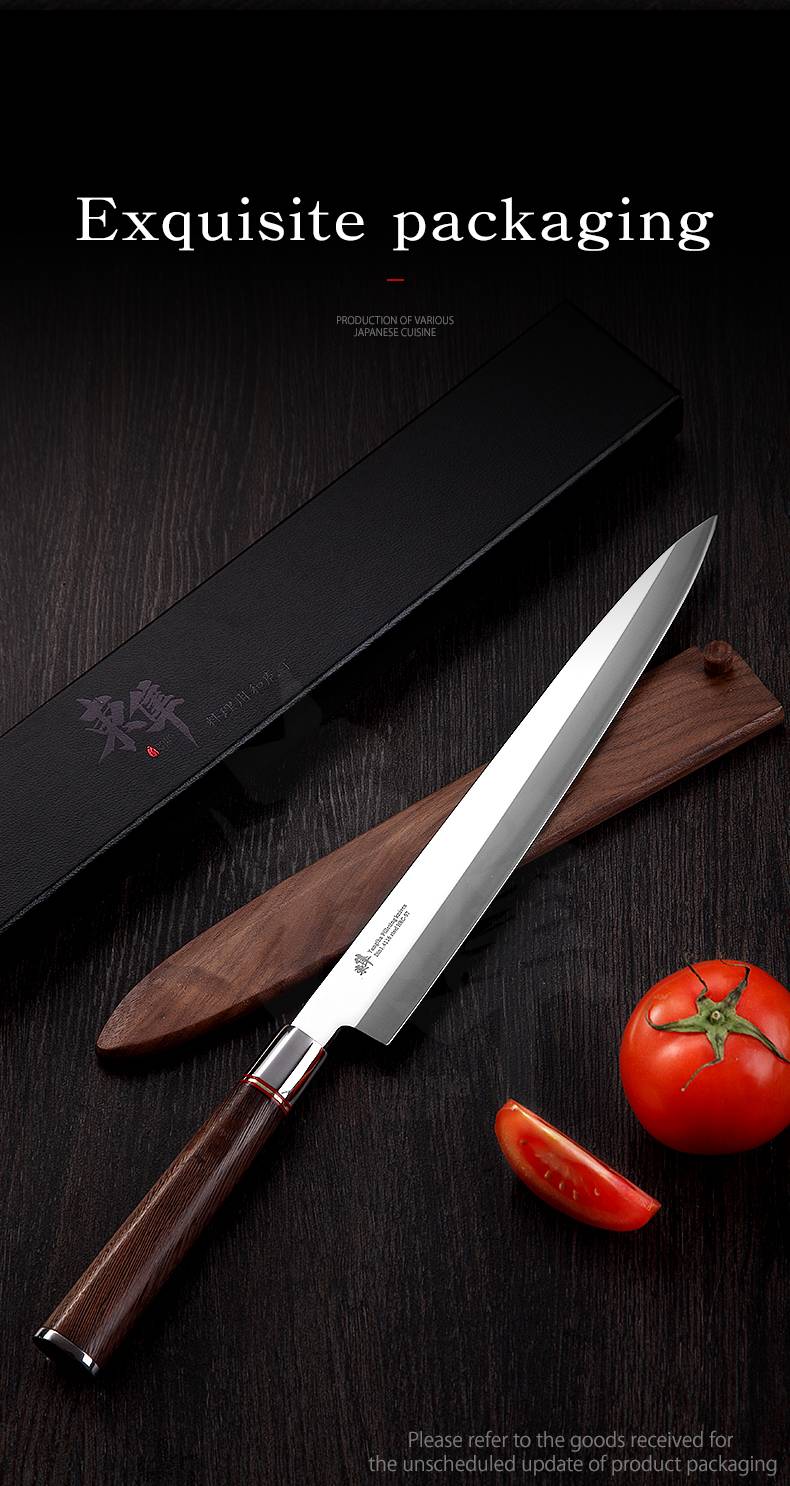 Добро пожаловать в магазин DongSun, профессиональная посуда! Как прямой производитель, мы предлагаем лучшие продукты и лучшие продукты. Наслаждайтесь прекрасными покупками здесь! Наименование товара: 8-12 дюймовые ножи для филировки sashimi Cuchillo de Cocina Yanagiba Материал лезвия: Немецкое производство стали 70Cr15MoV Материал ручки: леуканта из палисандра для длительного использования, без деформации, без усадки, без выцветания Логотип продукта: индивидуальный логотип может быть настроен, по умолчанию этот продукт не имеет логотипа производителя, за исключением стального логотипа, логотипа твердости и типов инструментов Твердость: HRC57 Сталь содержит углерод C: 0.7%, хром Cr: 15%, молибден Mo: 0.3%, Ванадий V: 0.2% Подарок: ножны из черного ореха/черные ножны (черные), Произвольный выбор Особенности: прочный, антиокислительный, Высокая острота, специальная обработка краев Новые филировочные ножи Yanagiba обновляются, некоторые модели поочередно обновляются, новая модель из стали 70Cr15Mov с содержанием углерода 0.7%, Твердость Инструмента более стабильна, острота более прочная, мы гарантируем, что каждый покупатель получит новейшие модели, а наша компания не использовала товары. Нам нужно сделать необходимые объяснения по поводу некоторых плохих отзывов По другим причинам некоторые страны не могут отправлять кухонные ножи. Для стран, которые не могут отправить почту, мы свяжемся с покупателем для возврата средств. Любой, кто не получил товар, будет возмещен Для этого мы гарантируем, что наши продукты очень выгодны.