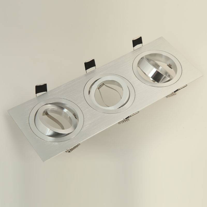 3 сиамские квадратных утопленные потолочные светильник фитинг матового алюминия MR11 MR16 GU10 баз фотолампы для диаметр 50 мм светодиодные лампы