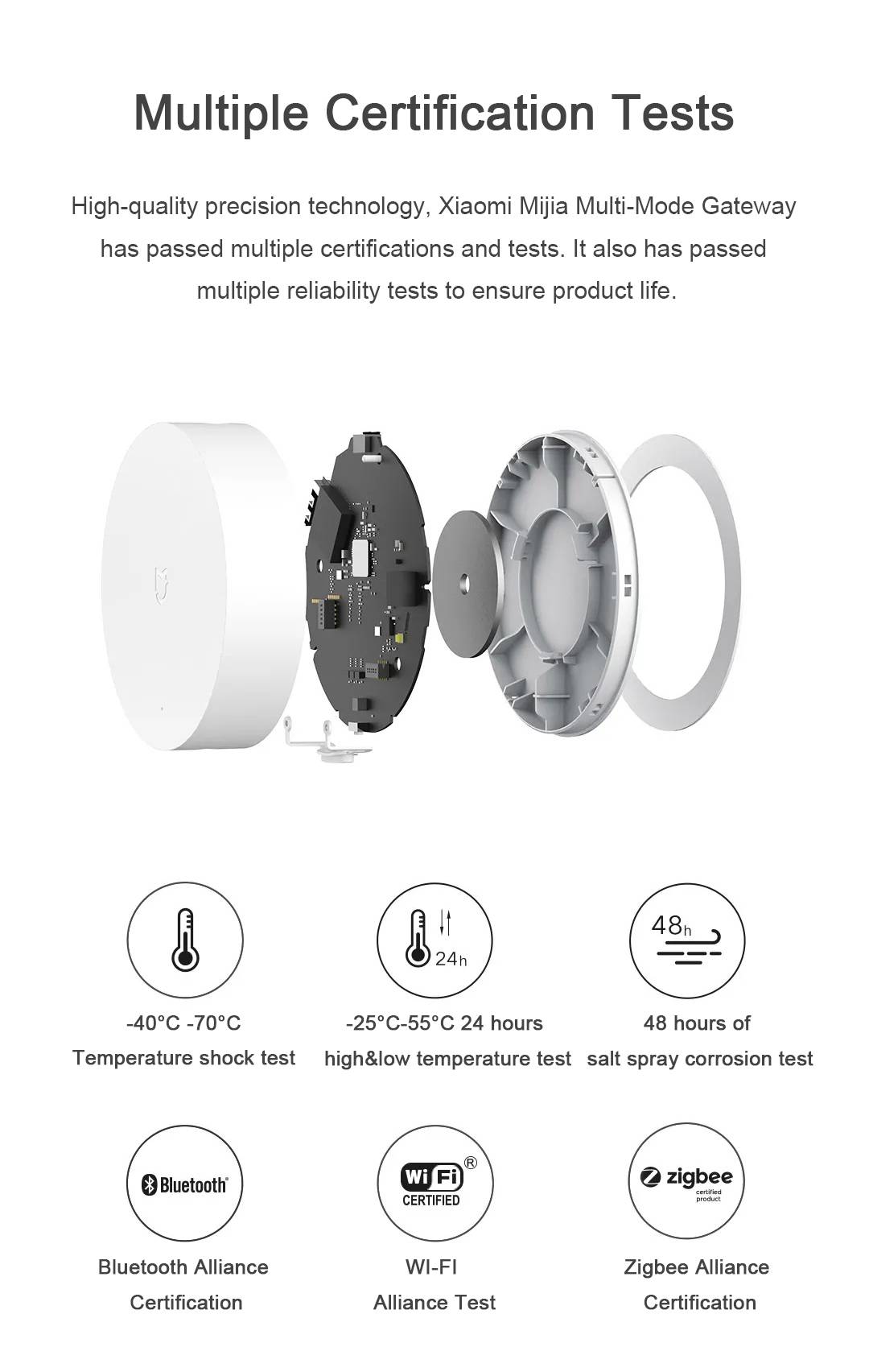 Поддержка Zigbee, Wi-Fi, Bluetooth и Bluetooth сетки три устройства протокола связи, что делает ваш умный дом проще. Интеллектуальная связь с домашними устройствами, голосовым, дистанционным и автоматическим управлением Основные параметры Бренд: Xiaomi Mijia Модель продукта №: ZNDMWG03LM Номинальный Вход: 5 В = 1 А Размер изделия: Средний 90x25 мм Рабочая влажность: 0% -95% RH, без конденсации Система поддержки: Android 5,0 или ios 12,0 и выше Количество подустройств: 32 Рабочая температура: -5 °C ~ 50 °C Беспроводной подключение: Wi-Fi IEEE 802.11b / g / n 2,4 ГГц, Zigbee 3,0, Bluetooth 5,0 Упаковочный лист: Умный многомодовый шлюз Xiaomi Mijia x 1 Руководство (включая три гарантийных сертификата) x 1 Адаптер питания x 1 Шнур питания x 1