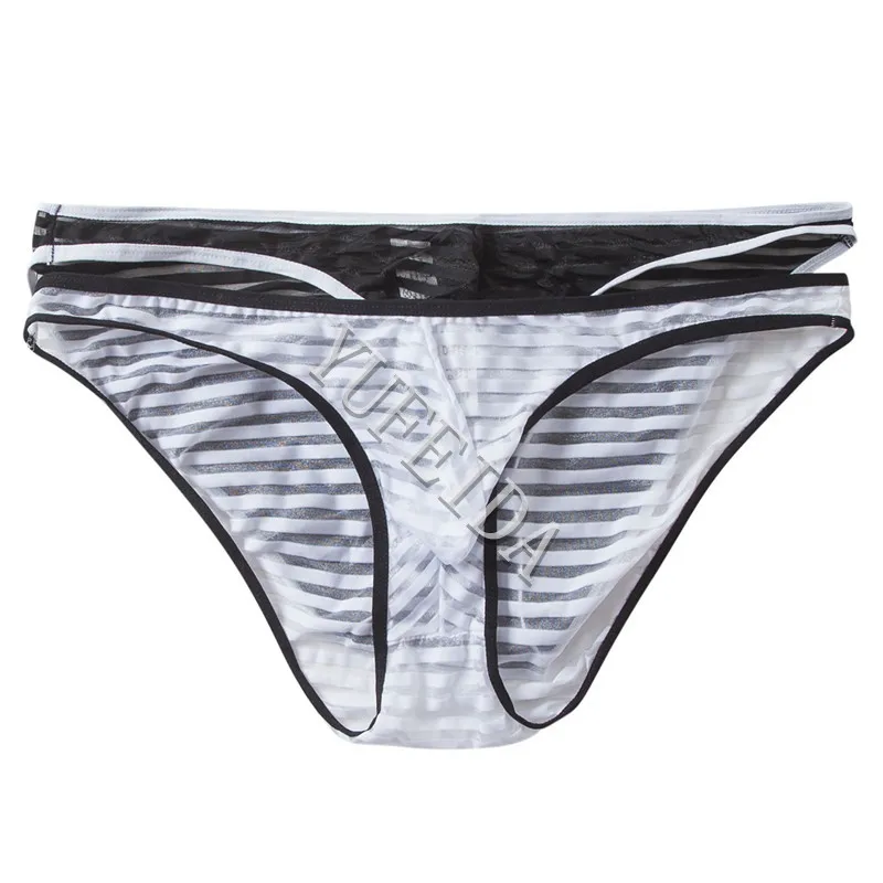 2 шт./лот, новые мужские трусы, нейлоновое Полосатое нижнее белье, сексуальное Белое Мужское нижнее белье, трусы-бикини