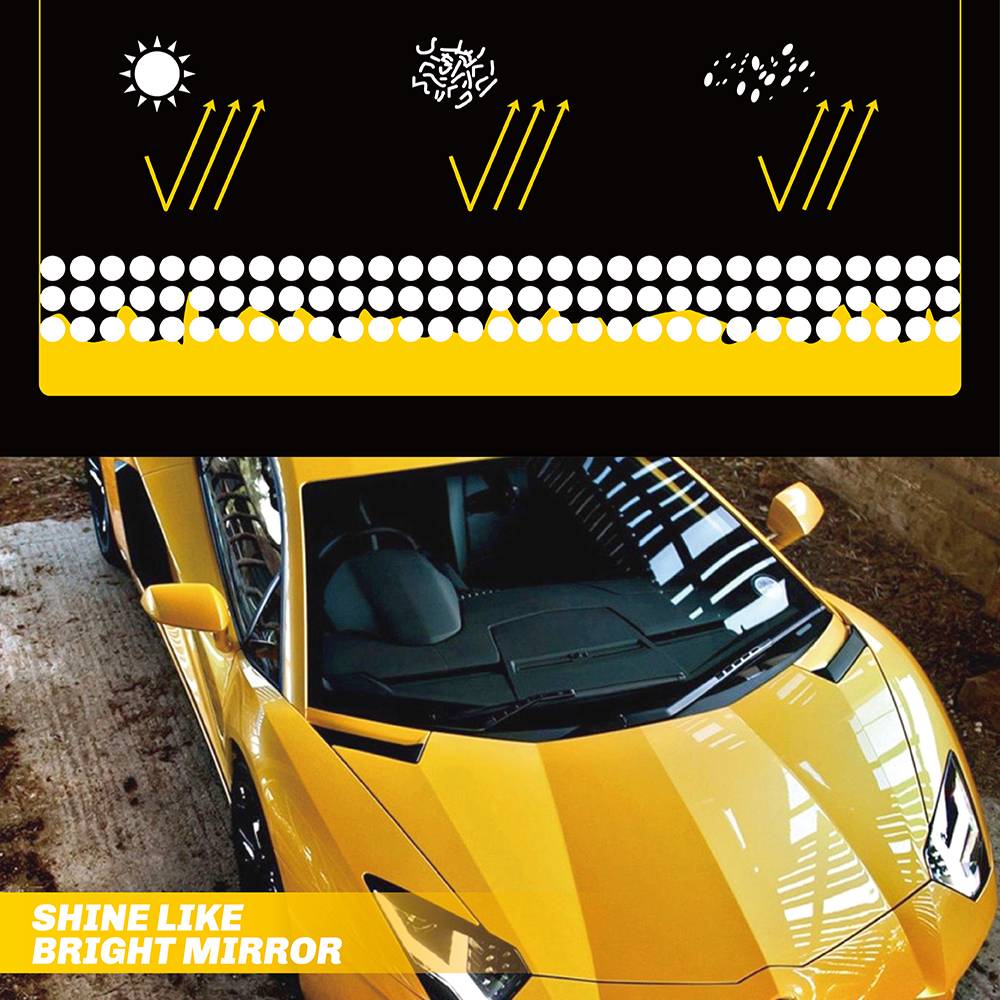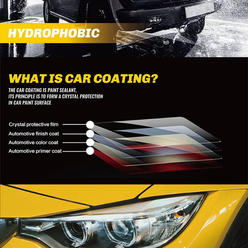 5、When you think it's not shiny enough, then use our AUTOCARE WATERMARK CERAMIC COATING for renewing. Tips: We recommend the following product usage for the best results. CRYSTAL CERAMIC COATING covers approx. 230 square feet per 100ml. See below for more detail. 50ml bottle = 120 sq. ft. coverage Honda Civic / Compact One 100ml bottle = 2 layers Cadillac Escalade / SUV One 100ml bottle = 1.5 layers