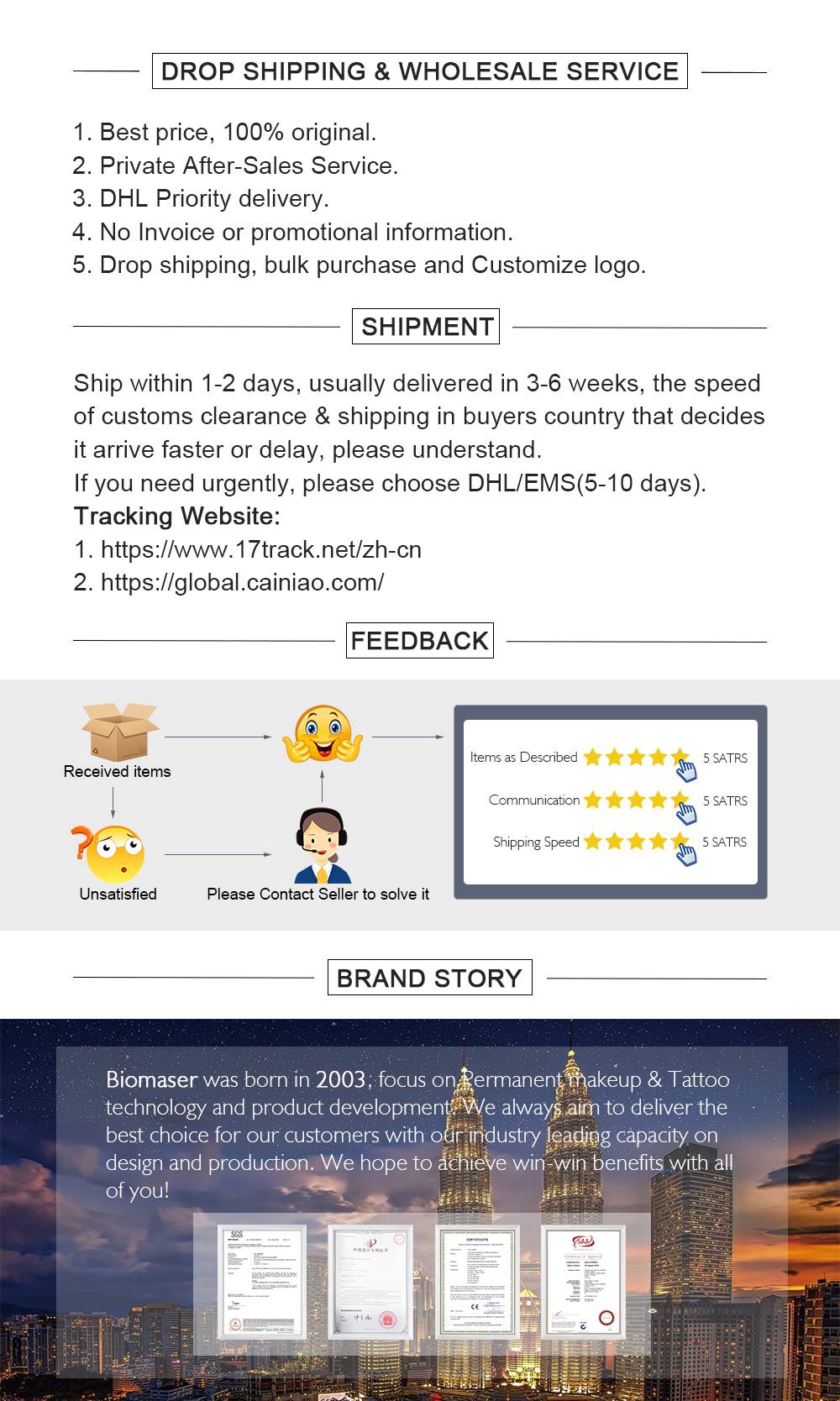 Biomaser может обеспечить оптовую и прямую доставку по усмотрению клиента, OEM-сервис и настройка также возможны по запросу.