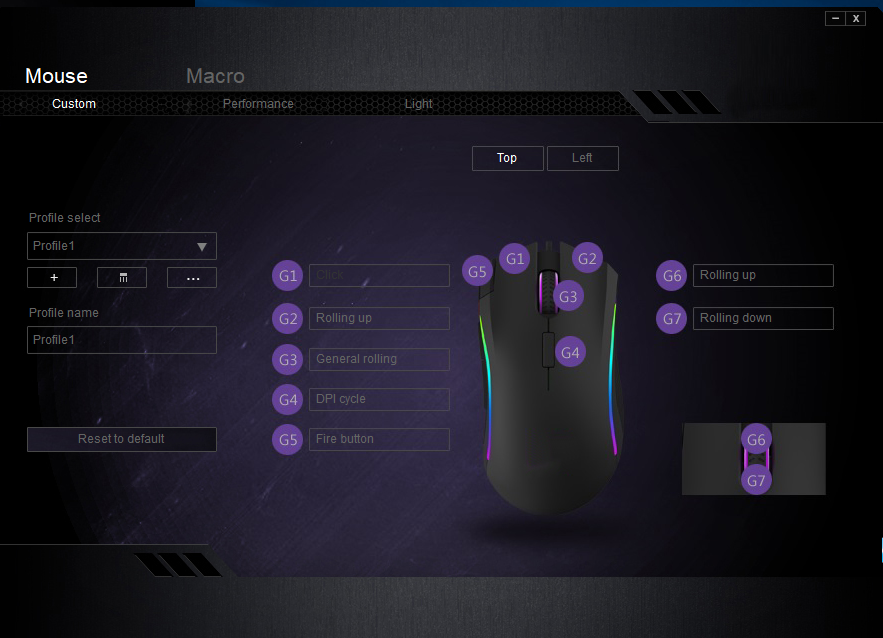 Все функции кнопок могут быть запрограммированы с помощью драйвера и определяются следующими функциями мыши: щелчок, обычная прокрутка, кнопка «вперед», кнопка «назад», двойной щелчок левой кнопки, прокрутка вверх и вниз, вправо и влево и кнопка для стрельбы. Еще больше функций ждут вашего исследования.