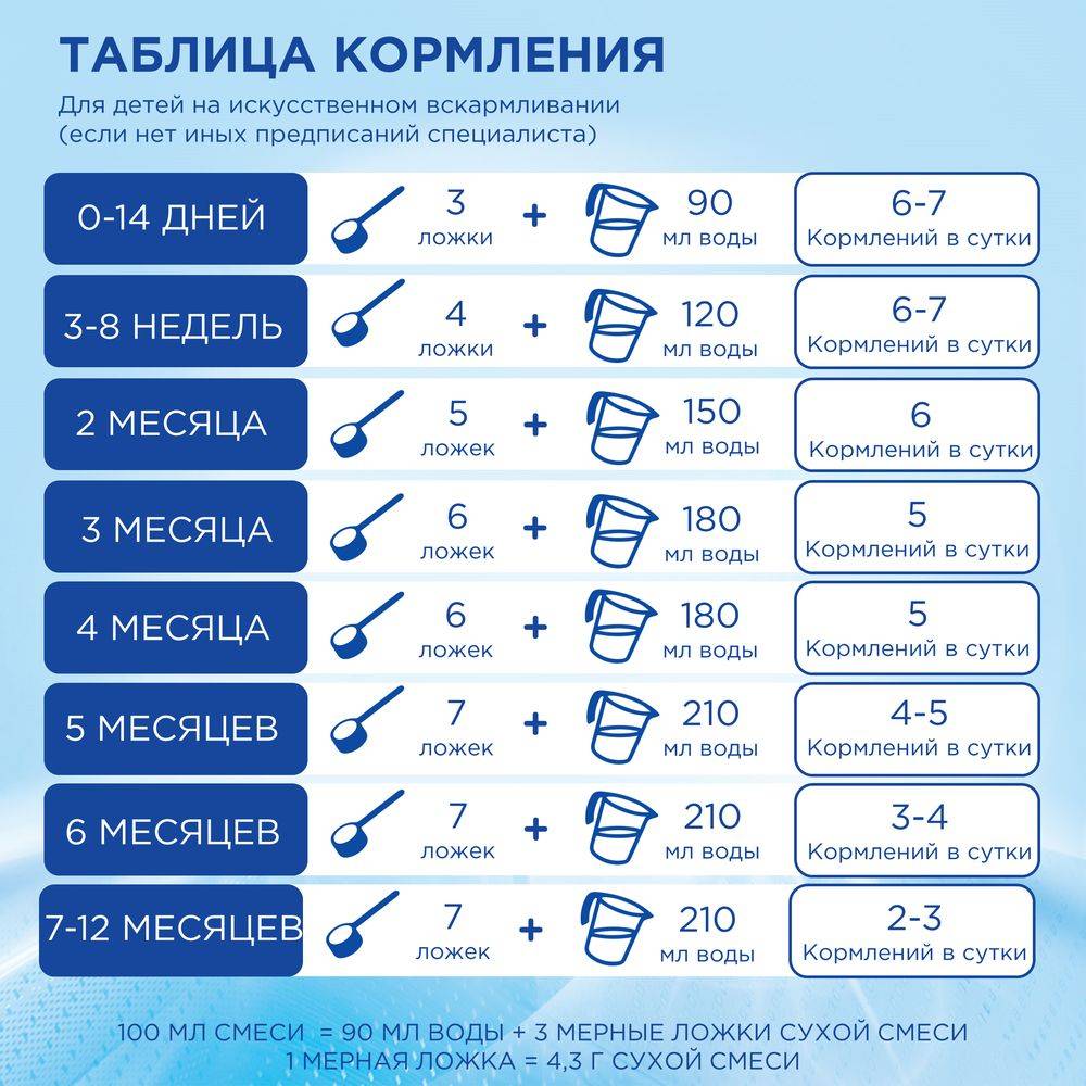 Пищевая ценность на 100г сухой смеси: белок - 10,3г, казеин - 10,1г, жиры - 27,3г, углеводы - 57,1г, глюкоза - 1,7г, мальтоза - 6,7г, полисахариды - 47,9г, минеральные вещества - 2,4г, нуклеотиды 25мг.