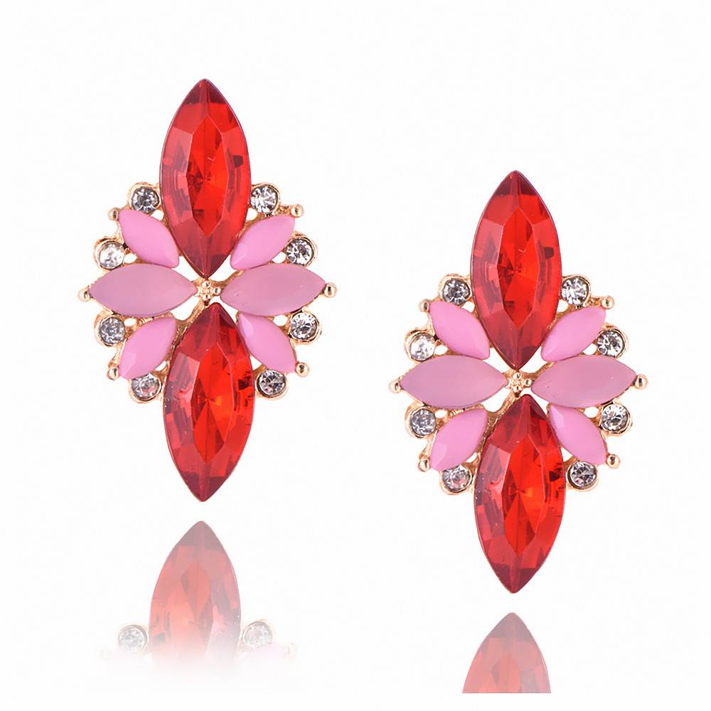 Название продукта: Новые женские модные серьги с кристаллами, стразы, Красный/Розовый стеклянный черный каучук, милые металлические серьги с листьями для девочек e0139
