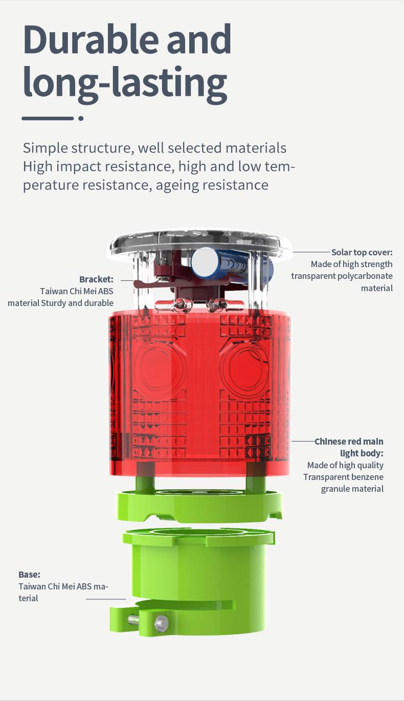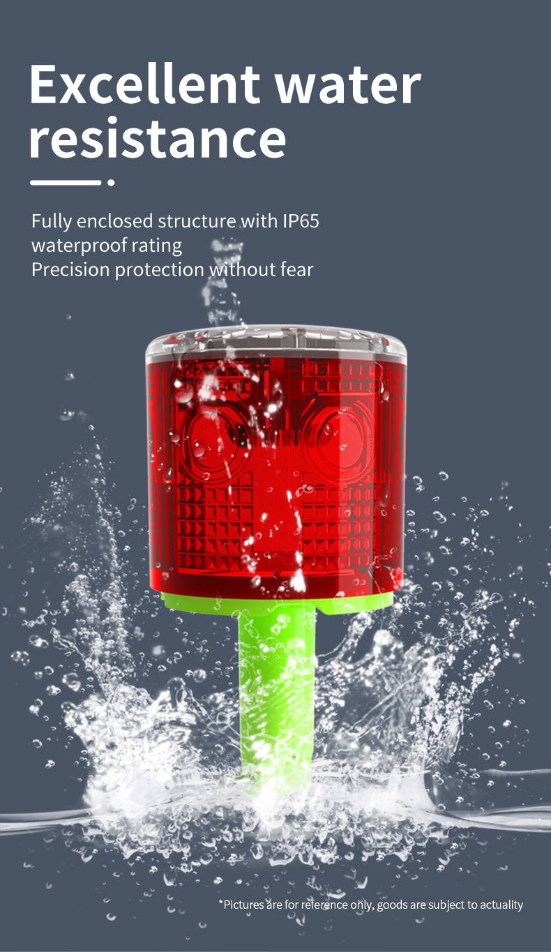 Этот Солнечный предупреждающий светильник полностью водонепроницаемый, предназначен для приближения к поверхности.