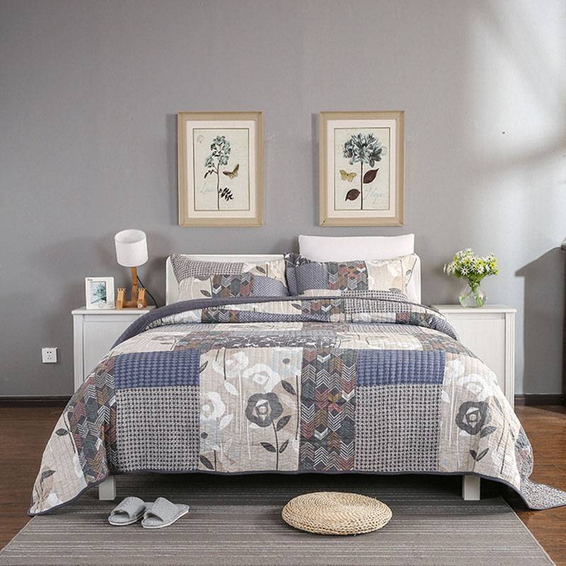 Постельные покрывала для двуспальной кровати серого цвета, комплекты из 3 предметов, хлопковое стеганое одеяло ручной работы с 2 шамами, одеяло для кровати