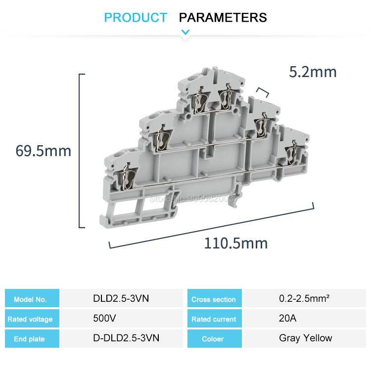 Din-рейка клеммные блоки DLD-2.5-3VN соединители тройные слои Электрический провод пружинный клеммный блок