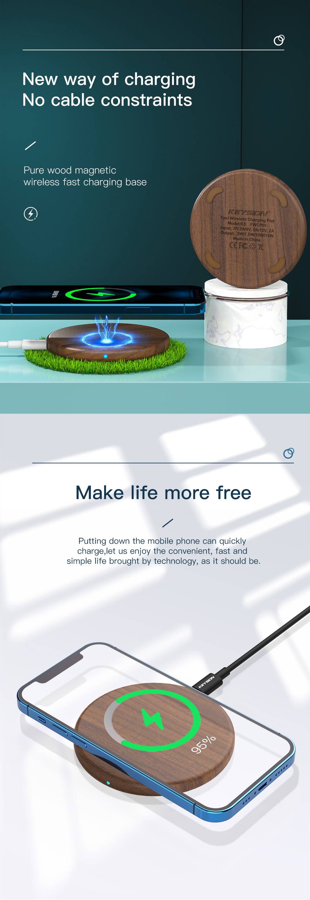 Предупреждение: необходимо использовать QC 2,0 3,0 9В/2A зарядное устройство ввода "блок управления, беспроводной зарядный выход может достигать 10 Вт или 7,5 Вт мощности.